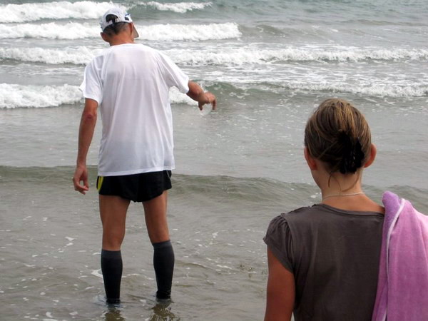 Avant de plonger dans cette mer méditerranée tant attendue depuis tous ces jours, on salue d’abord le vainqueur avec tout le mérite qui lui revient. 1151km de course en commun forcent le respect mutuel (surtout quand il s’agit dun récent finisher de la Badwater)